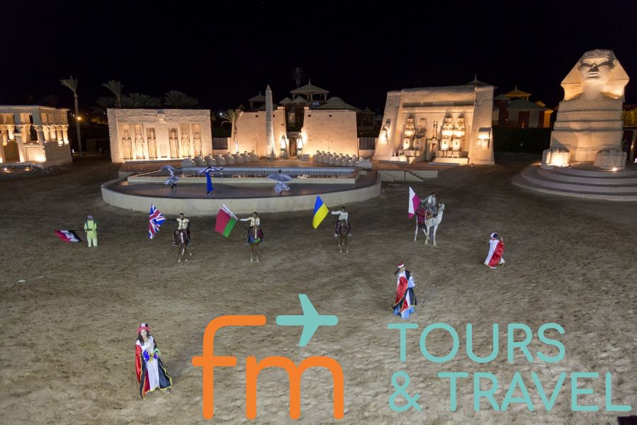 This trip will tell the story of Egypt's history in the form of an entertainment show with narratives in English, German and Russian. Included in the entertainment are: belly dancing, whirling dervish (tanoura dance), horse dressage show, dancing fountains and a light and sounds show.