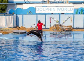 W 45-minutowym pokazie poza czterema delfinami biorą udział również foki i lwy morskie. Zwierzęta wykonują wiele różnych sztuczek. Delfiny skaczą przez obręcze, malują obrazki, foki bawią się piłeczkami, lew morski udziela lekcji aerobiku. Pokaz na pewno pozostanie na długo w Twojej pamięci. Uwaga! Przedstawienia w delfinarium są z udziałem zwierząt , więc każde może być inne i zależy od nastroju aktorów.